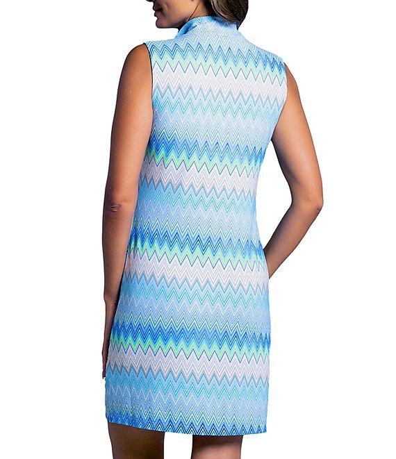 From IBKUL, this dress features: Patented Icefil technology fabrication Chevron print Mock neckline Sleeveless Pull-over construction Zip front placket Lightweight UPF 50+ protection Anti-microbial Straight hemline Above the knee length Nylon/Polyurethane Machine wash cold, Tumble dry low Imported.
