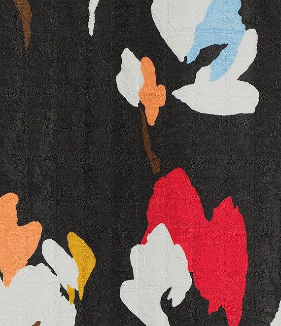 From IC Collection, this jacket features: Woven fabrication Tulip floral print High scoop neckline Long sleeves Side pockets Straight hem Open front Side slits Approx. 35" length Polyester Hand wash Made in the USA.