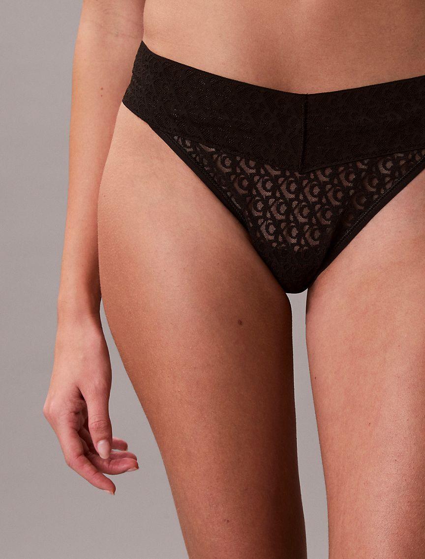 A Calvin Klein icon. This thong is the definition of effortless. Made from supremely soft stretch lace with monogram logo styling. Finished with a flexible lace logo waistband.