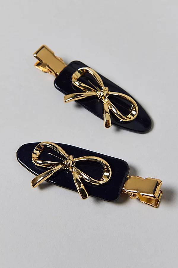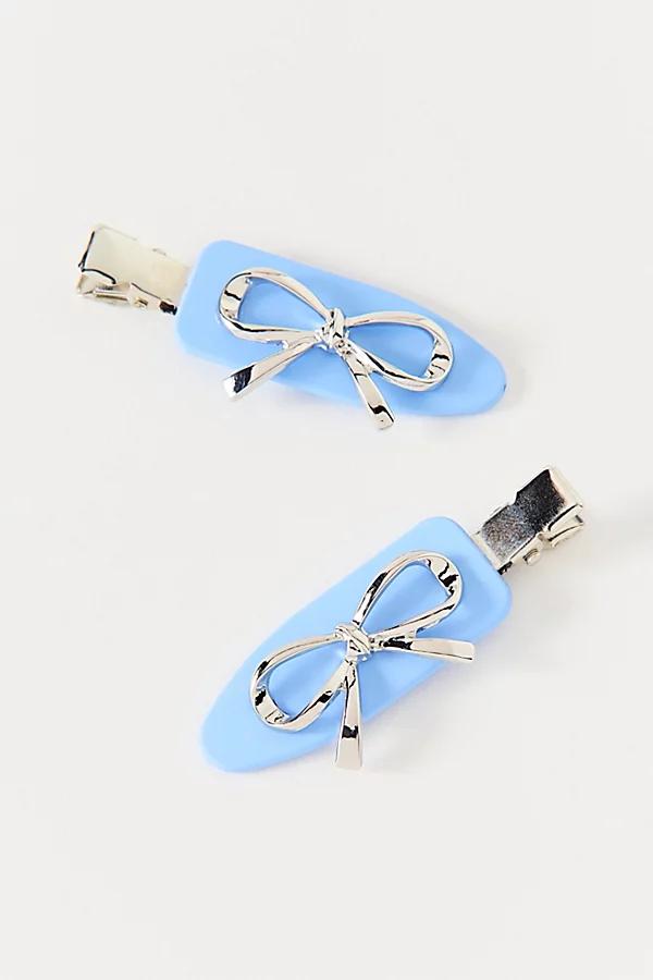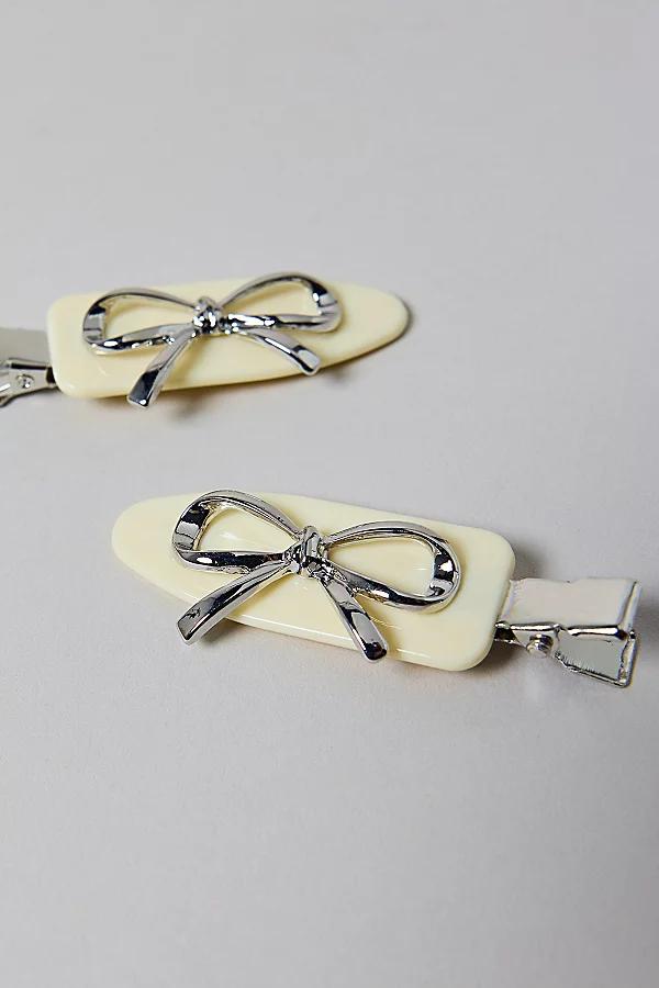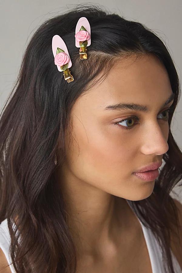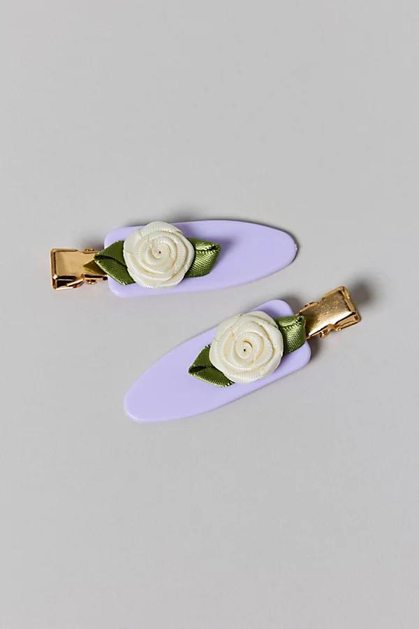 Keep your hair crease free with this set of matching no crease hair clips. Smooth metallic silhouette topped with iconic details like flowers and bows. Features Icon no crease hair clips set Smooth creaseless hair clips Set of two matching hair clips Metallic with icon details like flowers and bows Content + Care Set of 2 Mixed metal, plastic Wipe clean Imported Icon No Crease Hair Clip Set in Purple Rosettes, Womens at Urban Outfitters