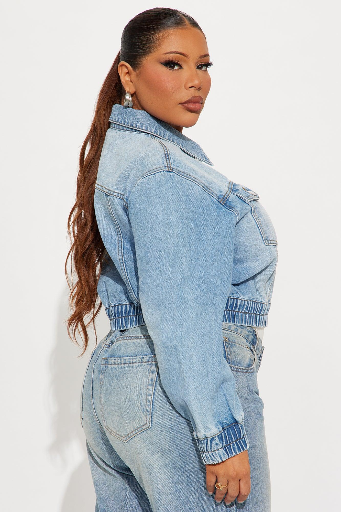 Iconic Cropped Denim Bomber Jacket - Light Wash Female