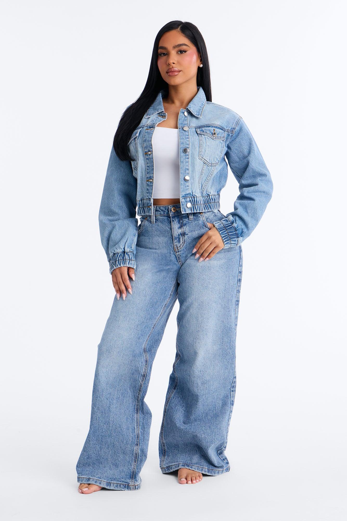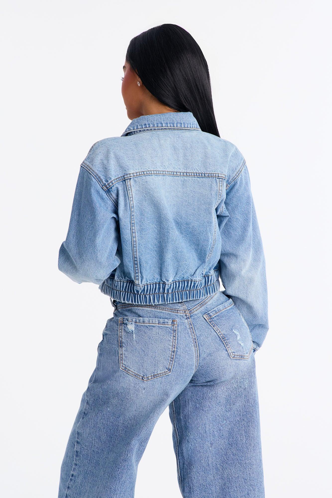 Iconic Cropped Denim Bomber Jacket - Light Wash