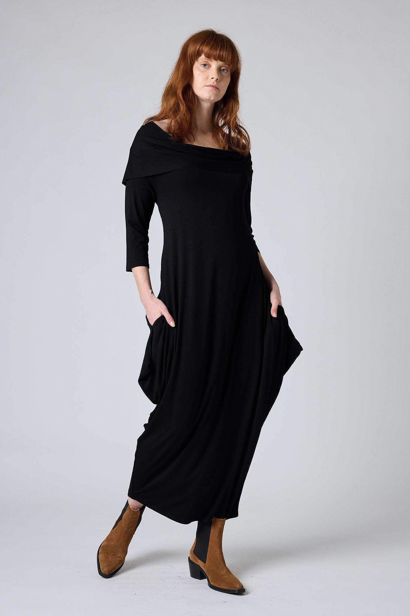 Our classic Maxi Dress in chic and super flattering black is your new Spring closet staple and the off-the-shoulder design is sure to turn heads. Dress up or down depending on the occasion.