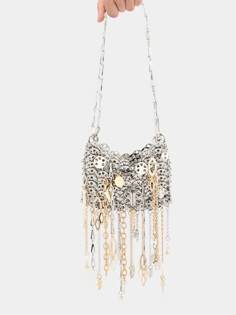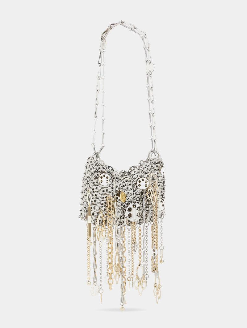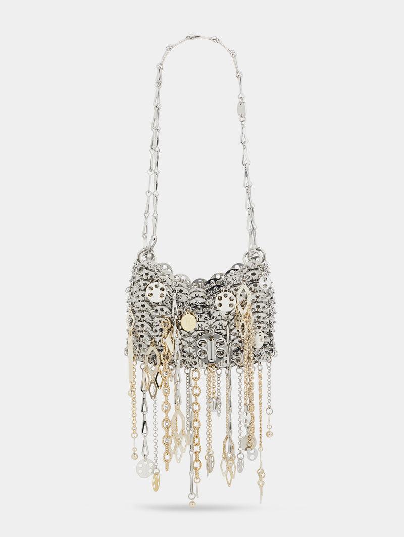 Iconic silver nano 1969 bag assembled with metallic pampilles