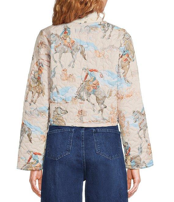 Ida Mae Home Western Print Open Front Long Sleeve Cropped Jacket