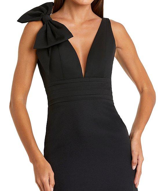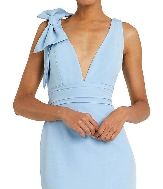 From Ieena for Mac Duggal Petite, this dress features: A-line silhouette V-neckline Sleeveless Bow shoulder detail Lined Zip back closure Approx. 57" length from shoulder to hem Polyester Spot clean Imported.