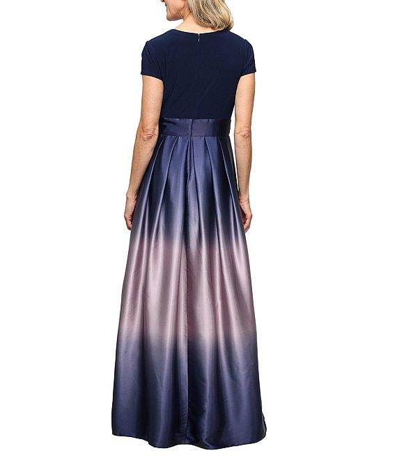 Ignite Evenings Ombre Satin Charmeuse Matte Jersey Short Sleeve V-Neck Ball Gown