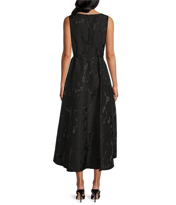 Ignite Evenings Petite Size Jacquard Surplice Neck Sleeveless Hi-Low Midi Dress
