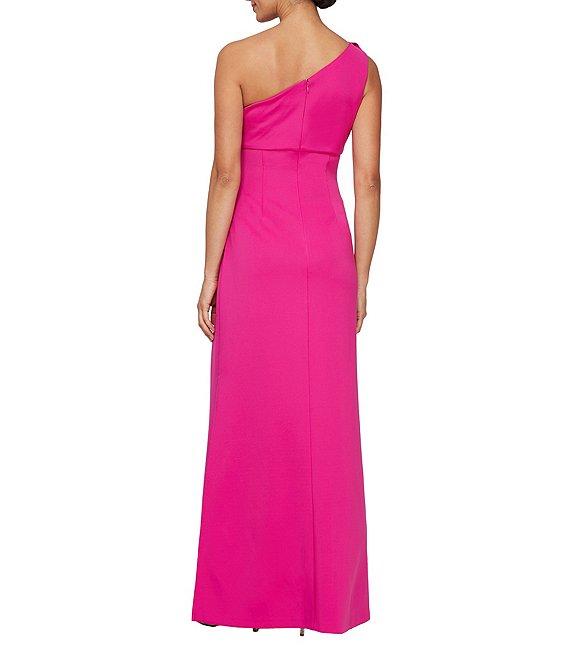 From Ignite Evenings, this dress features:Scuba crepe fabricationOne shoulder necklineDetail at shoulderRuched waistSide slit Center back zipper closureApprox. 54'' in lengthPolyester/spandexHand washImported.