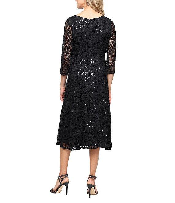 Ignite Evenings Sequin Lace Sweetheart Neck 3/4 Sleeve A-Line Midi Dress