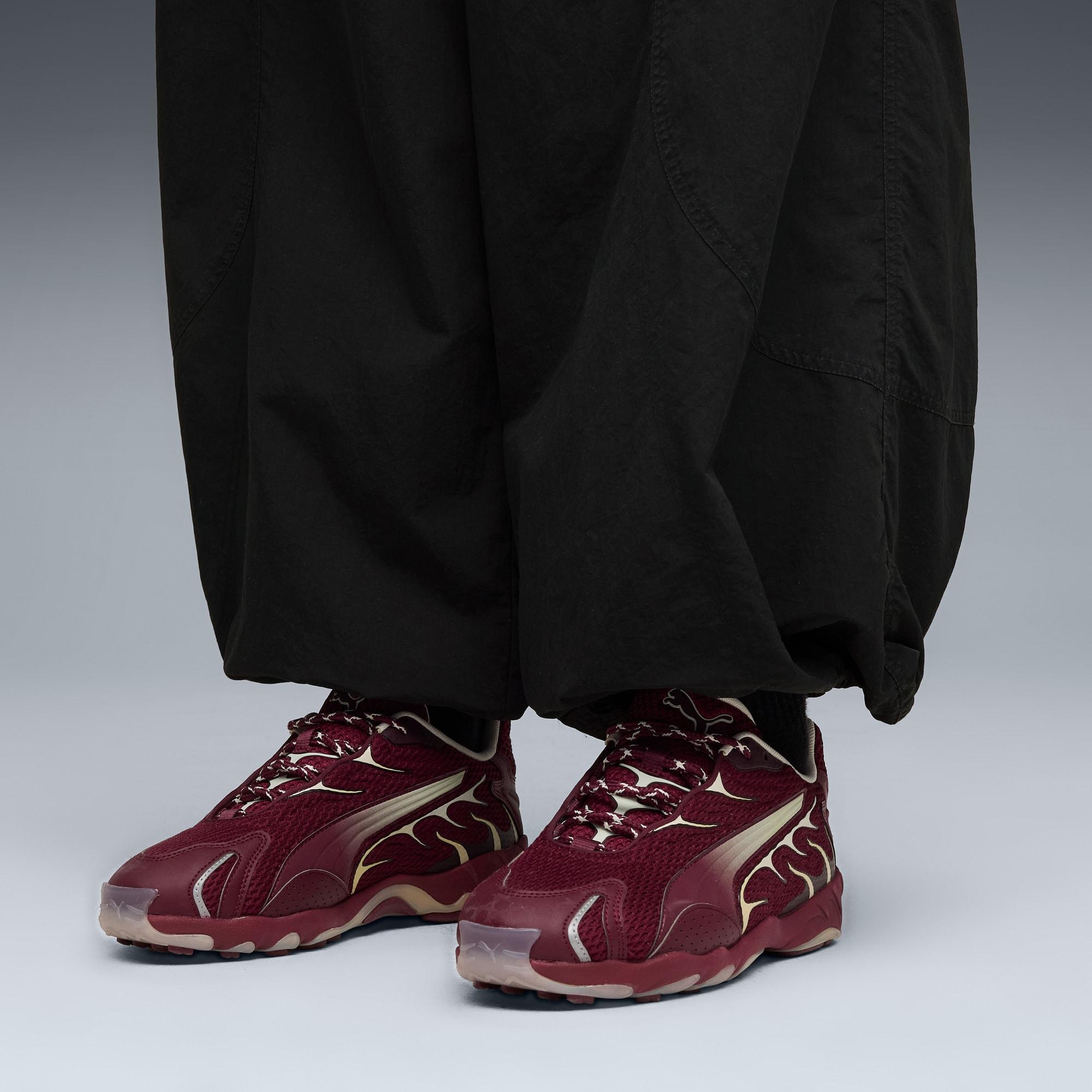 descriptionThe original Inhale was launched in 2000 as a running shoe with bold, exaggerated contours and a thick sole. Today this unmistakable silhouette makes its return for the streetwear world with its extreme curves and aggressive DNA still intact. This execution features reflective overlays on heel and toe. This execution features reflective underlays and semitranslucent overlays.Style: 404335_01Color: Ruby Shimmer-Alpine Snowfeatures & benefitsMade with at least 20% recycled materials.detailsRegular fitLace closureSynthetic leather overlaysRubber soleRounded toematerials & careMaterial informationMidsole: 100% SyntheticSockliner: 100% TextileOutsole: 100% RubberUpper: 51% Textile, 49% SyntheticLining: 100% Textile