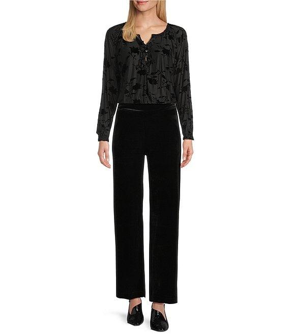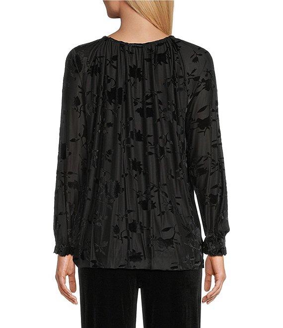 Intro Clip Dot Split V-Neck Long Sleeve Ruffle Blouse