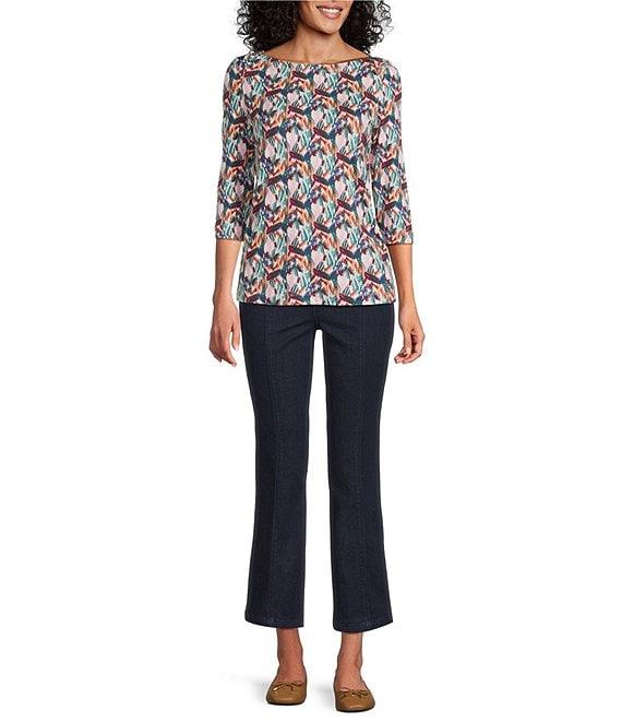 Intro Petite Size Knit Jersey Teal Geometric Print Boat Neck 3/4 Sleeve Tee