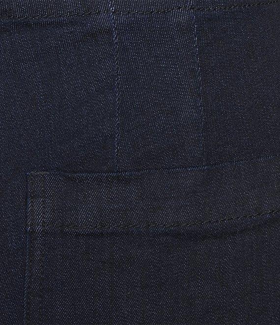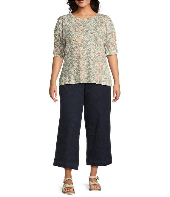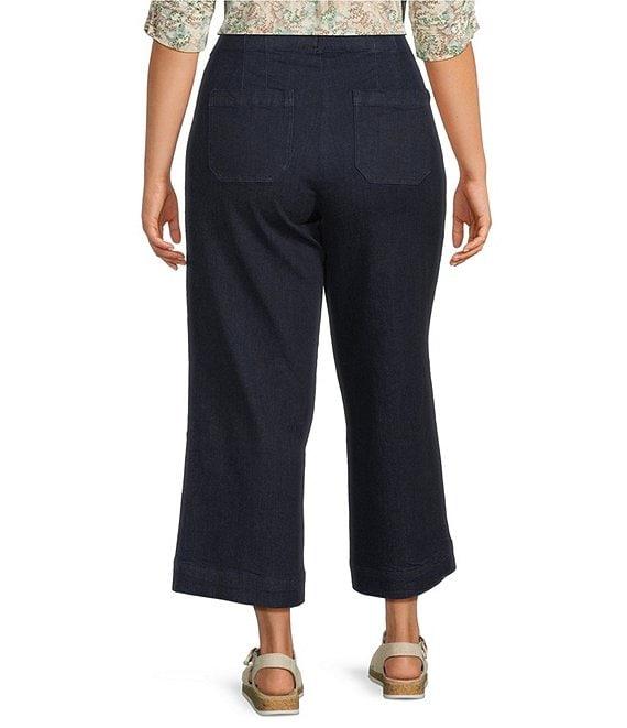From Intro Plus, these pants feature: Freedom denim fabrication Relaxed leg Belt loops Functional front & back patch pockets Cropped length Straight hem Pull-on construction Approx. 26.5" inseam Cotton/rayon/polyester/spandex Machine wash/tumble dry Imported.