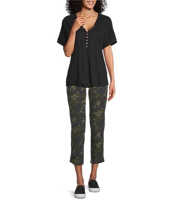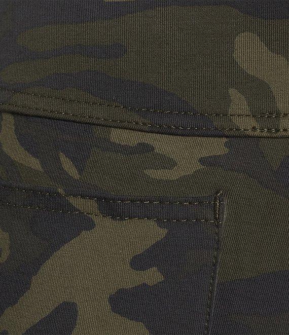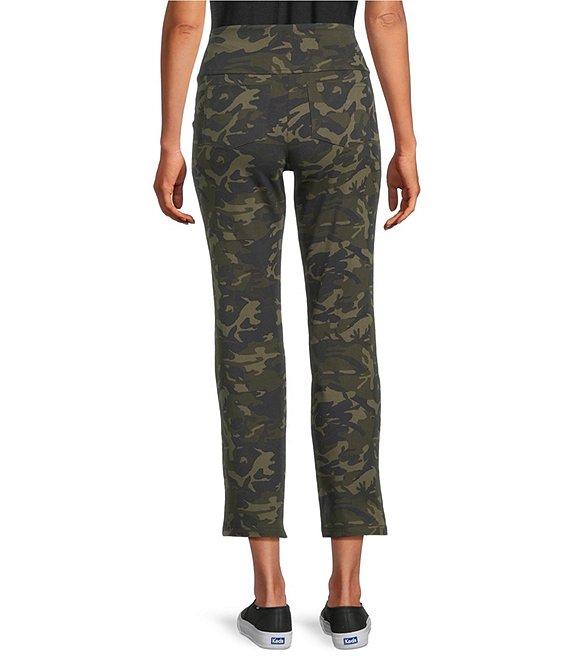 From Intro, these pants feature: Suave knit fabrication Flat front silhouette Elasticized waistband Tummy control waist Functional back patch pockets Pull-on construction Approx. 29" inseam Cotton/spandex; inner panel: polyester/spandex Machine wash/tumble dry Imported.