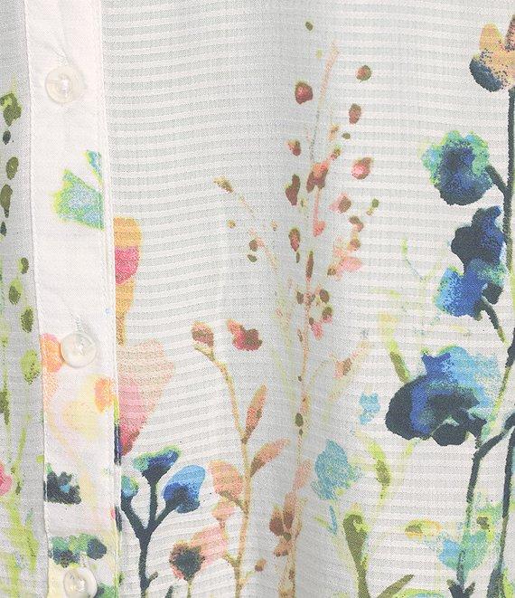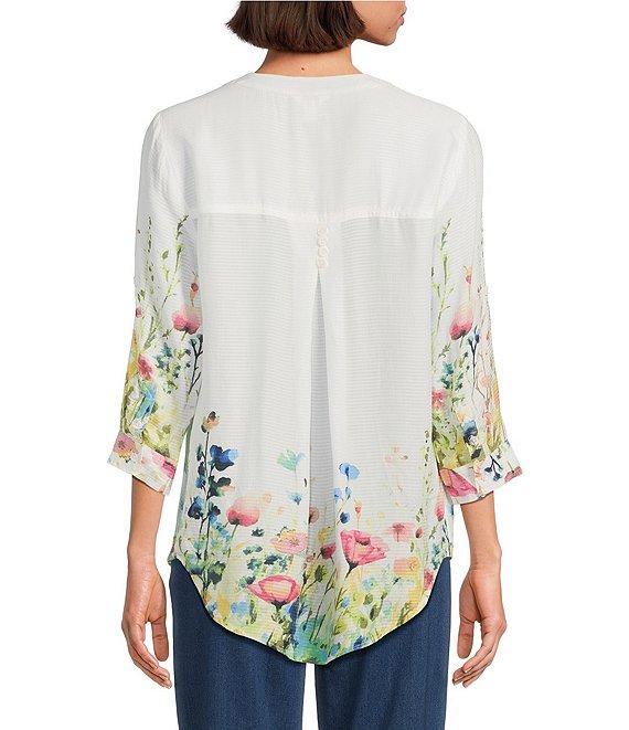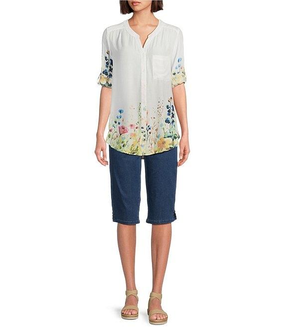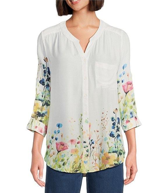 Intro Woven Bright White Split V-Neck 3/4 Roll-Tab Sleeve Button Front Shirt