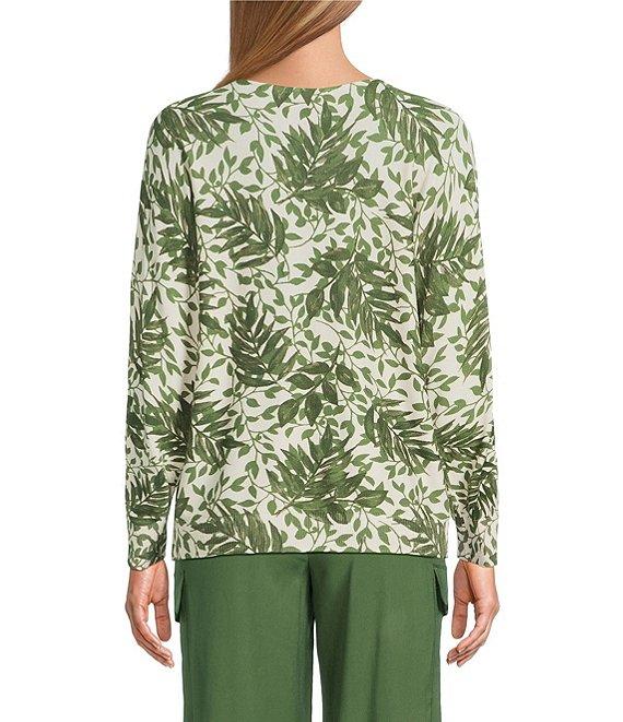 Investments Layered Leaves Long Sleeve Boat Neck Pullover Sweater