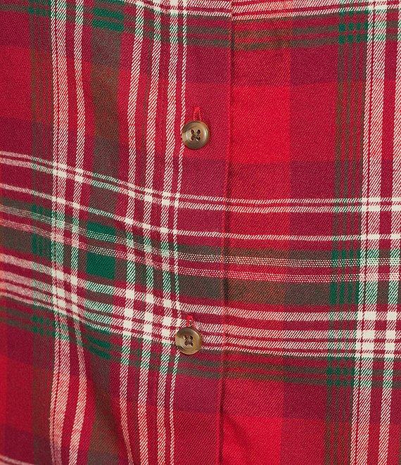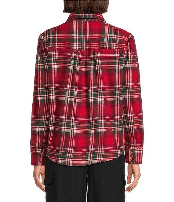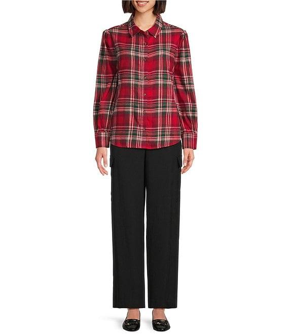 Investments Petite Red Plaid Long Sleeve Point Collar Button Front Top