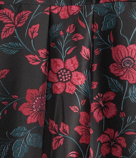 Investments Placed Floral Long Sleeve Point Collar Button Front Top