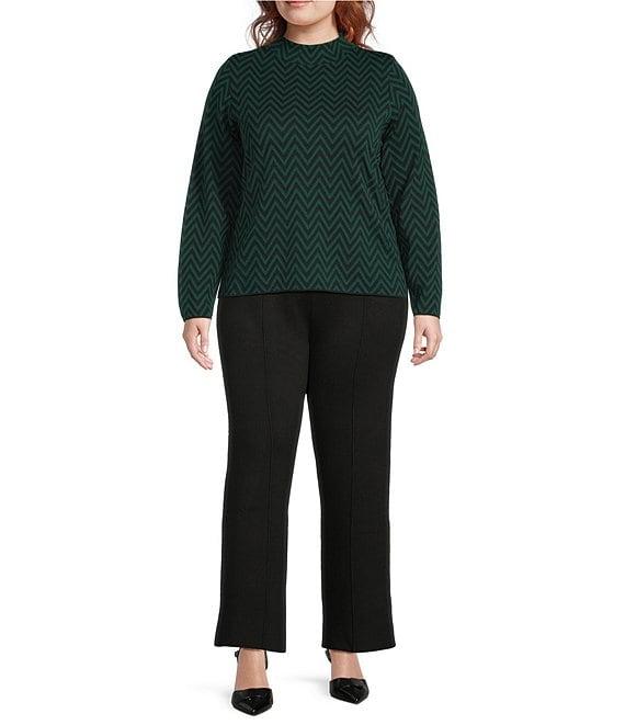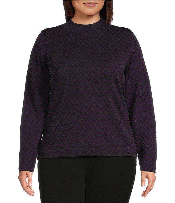 Investments Plus Rainforest Zig-Zag Mock Neck Pullover Long Sleeves Top