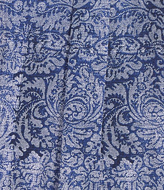 From Investments Plus, this blouse features: Mazarine scroll print Drapey twill fabrication Y-neckline Long sleeves Pullover construction Rayon Machine wash/dry flat Imported.