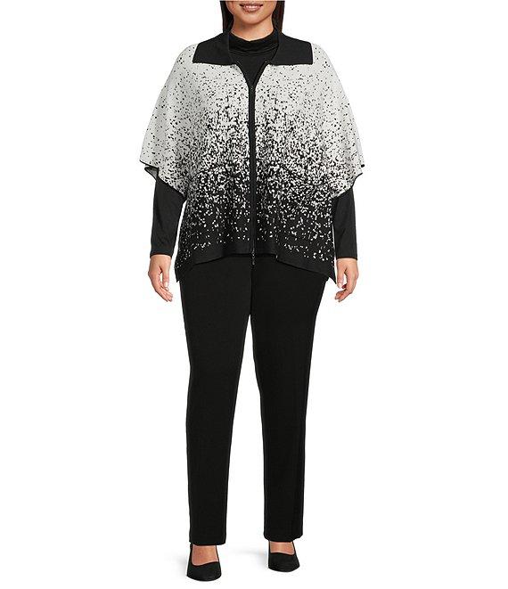 From Investments Plus, this poncho features: Light weight soft fabrication Point collar with removeable faux fur collar Elbow length sleeves Two-way full zip front closure with side snaps Functional front pockets Approx. 27" center back length Body: rayon/polyester; Collar: polyester Machine wash/dry flat Imported.
