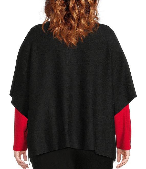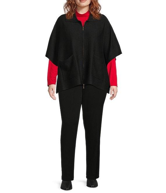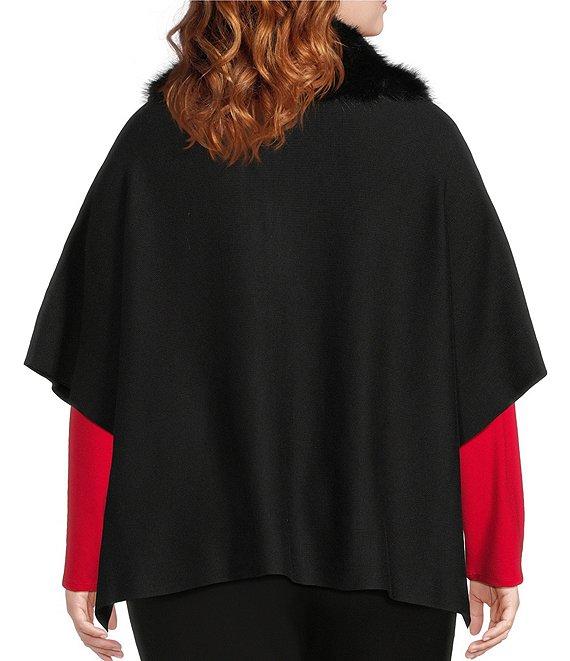 From Investments Plus, this poncho features: Light weight soft fabrication Point collar with removeable faux fur collar Elbow length sleeves Two-way full zip front closure with side snaps Functional front pockets Approx. 27" center back length Body: rayon/polyester; Collar: polyester Machine wash/dry flat Imported.