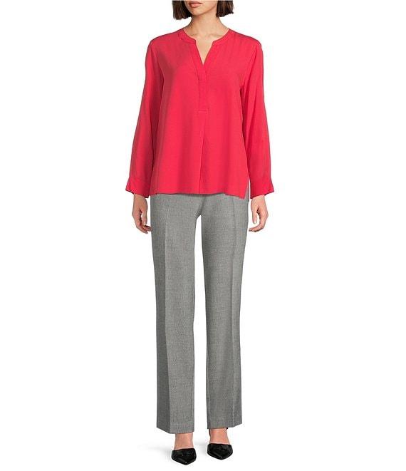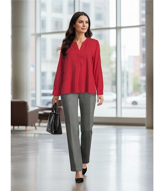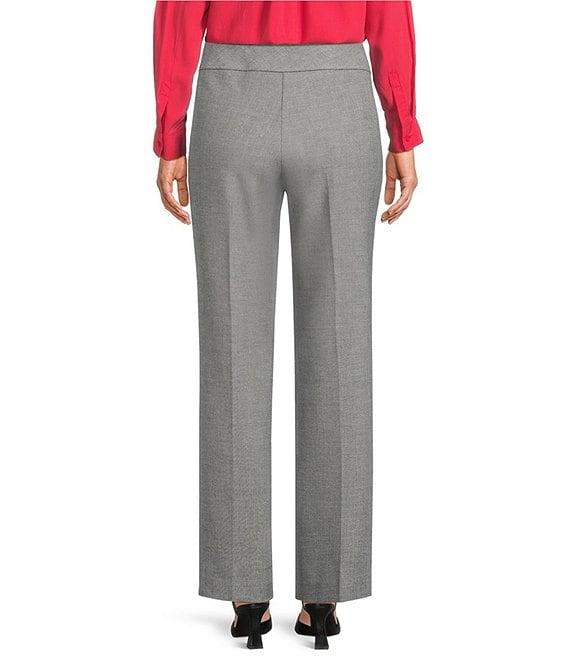 From Investments, these pants feature: Woven pattern Two-way stretch fabrication Functional front zipper pockets Secret Support® tummy panel Pull-on construction Approx. 29" short inseam; 31" regular inseam; 33" long inseam Polyester/rayon/spandex Machine wash Imported.