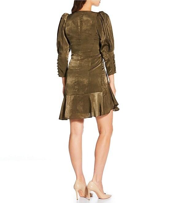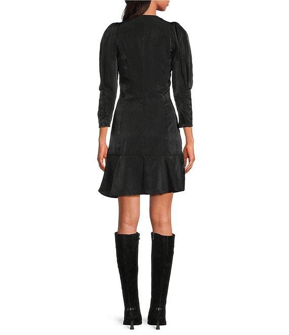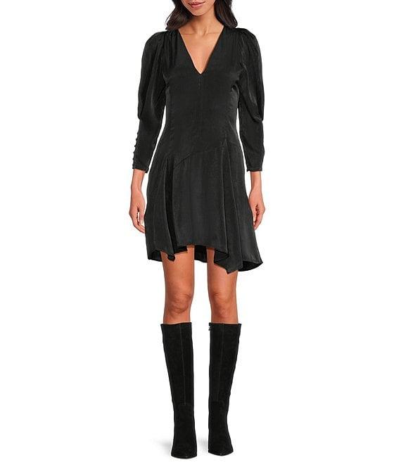 IRO Emerila Sateen V-Neck 3/4 Puff Sleeve Asymmetrical Hem Dress