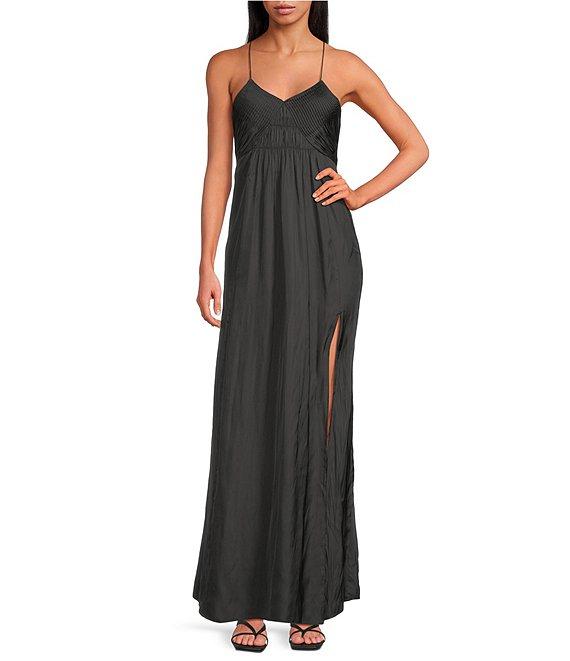 IRO Ingrid V-Neck Sleeveless Front Pleat Maxi Dress