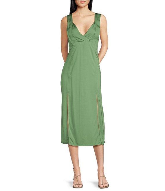 IRO Woven Satin V-Neck Sleeveless Midi Dress