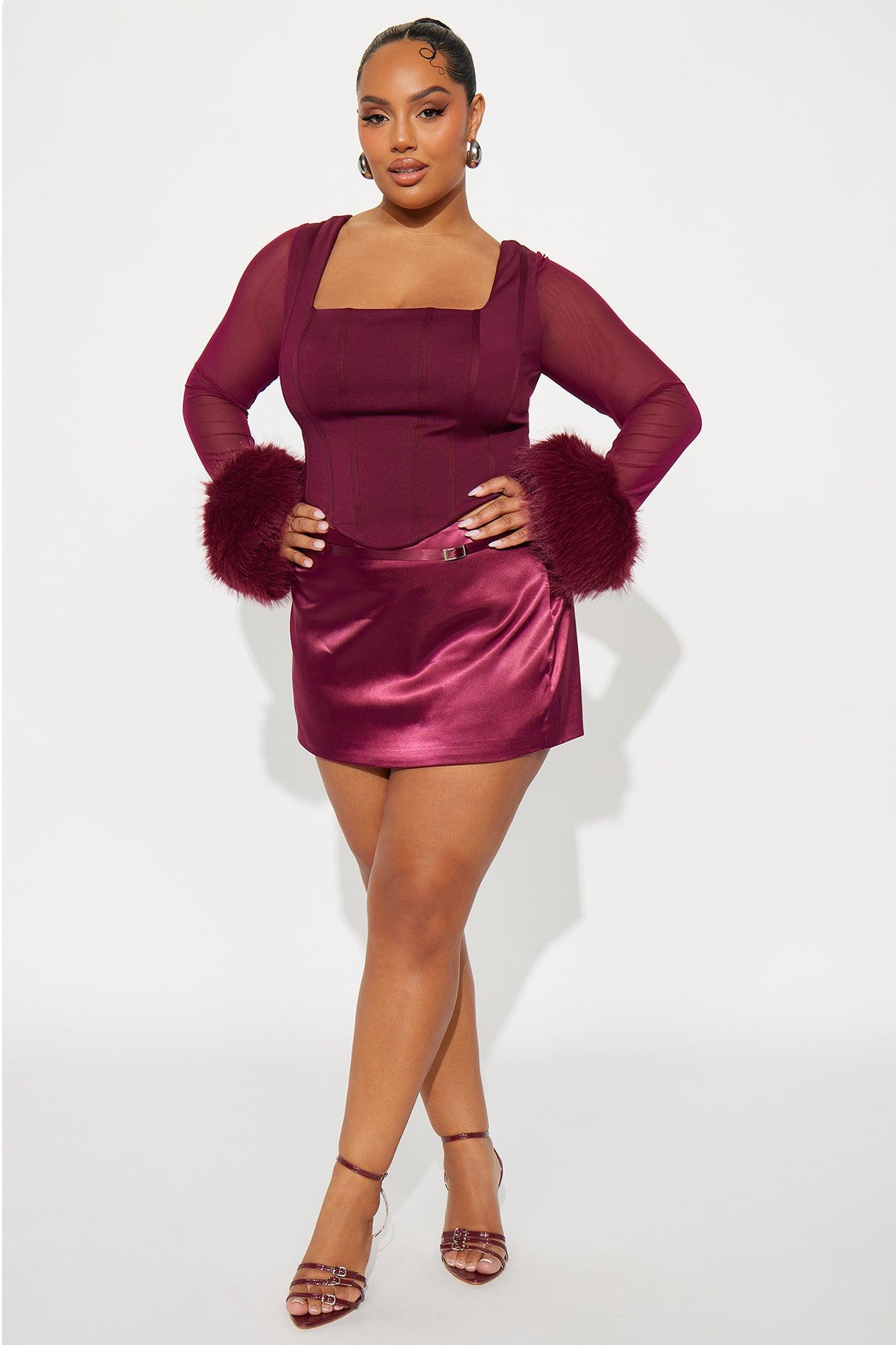Isa Faux Fur Corset Top - Burgundy Female