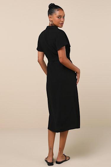 You'll channel those sunny Amalfi vibes no matter where you are when you've got the Lulus Italian Summer Black Linen Button-Up Short Sleeve Midi Dress! Gauzy linen-blend fabric shapes this breezy dress that has a collared neckline and short, fluttery sleeves. Full button placket continues past a belted waist (with removable sash belt) to a midi hem.