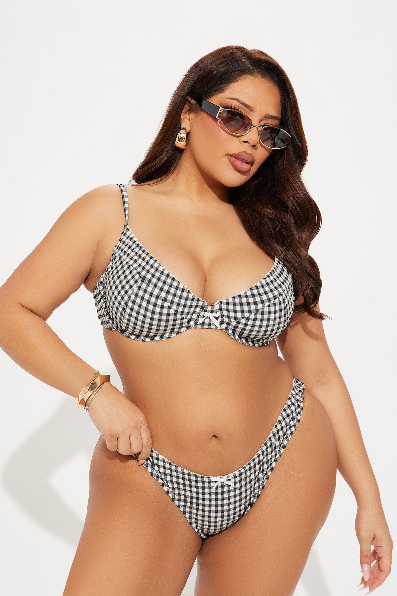 Available In Black/White. 2 Piece Bikini Set Underwire Top Adjustable Straps Lace Trim Bow Detail Bikini Bottom Cheeky Full Stretch Final Sale Disclaimer: Print Placement May Vary. Shell/Lining: 88% Nylon 12% Spandex Imported California Proposition 65 WARNING: Cancer and Reproductive Harm - www.P65Warnings.ca.gov.
