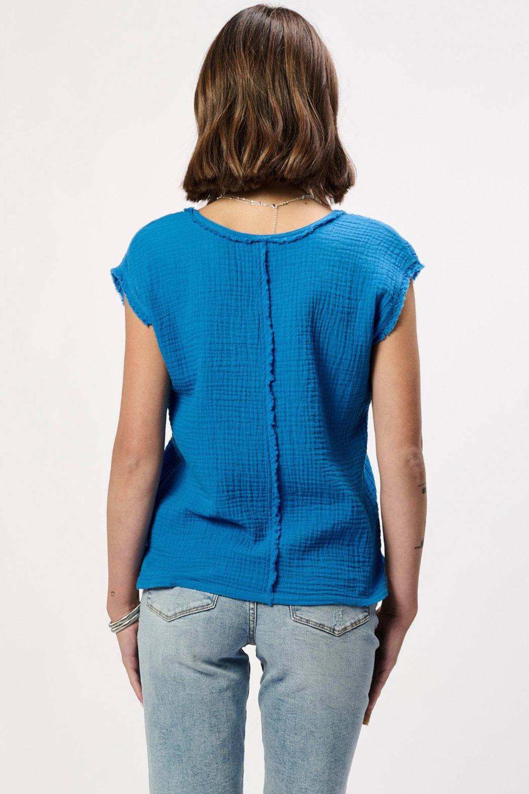 Discover unparalleled comfort and style with our Izzie Top in Starry Night, featuring a sleeveless V-neck design and chic raw edge trim, crafted from 100% cotton for a breathable fit. Perfect for versatile outfits, it embodies women's fashion effortlessly.