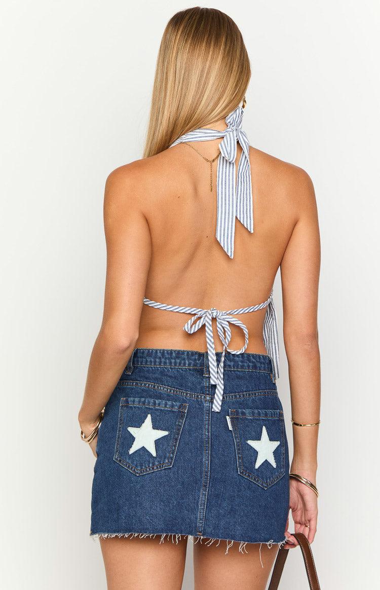 Blue Stripe Adjustable Halter Neck TopHow to Style:Our Izzie Halter Neck Top is your go-to for soaking up the sun on a beach vacation or for a fresh daytime look at a summer festival! Featuring versatile adjustable bust panels for your perfect coverage, a classic halter neck tie, and a breezy open back, this top is effortlessly stylish. Elevate your outfit by pairing it with white linen shorts and your favourite sandals for a fresh summer edit!Features: Halter style top Adjustable bust panels Halter neck tie Back tie Open back Perfect for beach days, summer festivals, pool parties, and sunny weekend escapes.