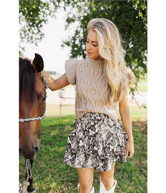 J.Marie Elliot Short Sleeve Crew Neck Cable Sweater