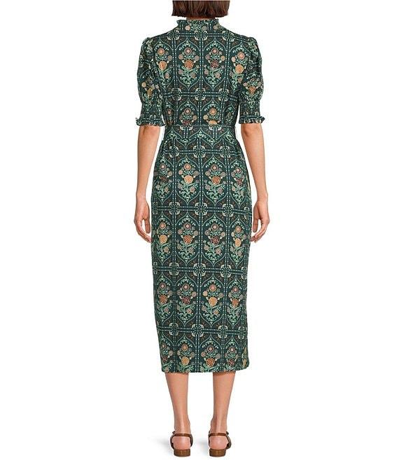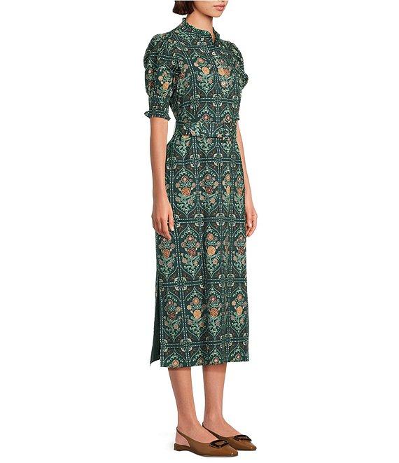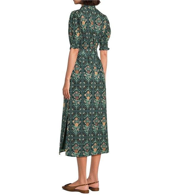 J.Marie Hazel Printed Short Sleeve Button Front Midi Ruffle Dress