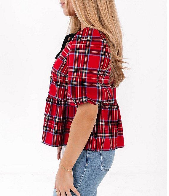 J.Marie Hollin Woven Short Sleeve Bow Top