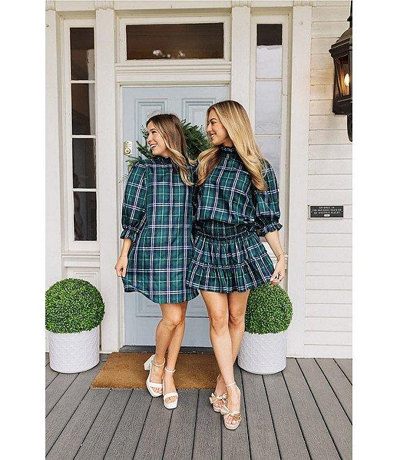 J.Marie Jordyn Woven Plaid Print Mock Neck Long Sleeve Tie Back Bow Dress