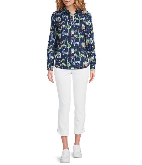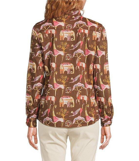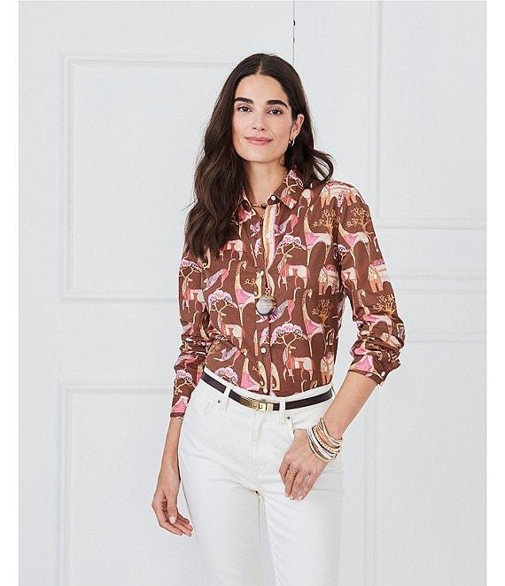 J.McLaughlin Lois Animal Printed Point Collar Long Sleeve Button Front Blouse