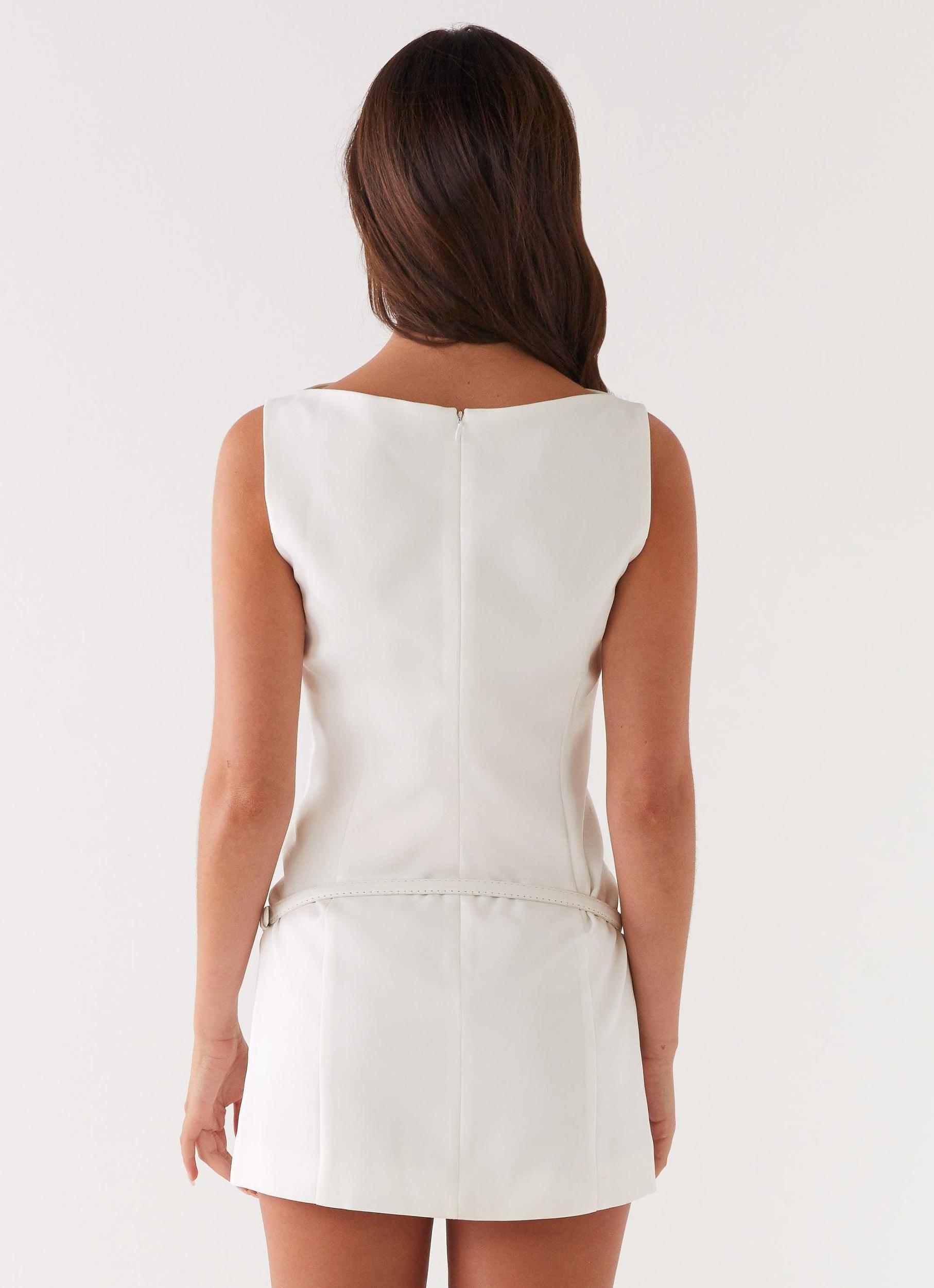 Peppermayo Exclusive The Jaci Mini Dress is the ultimate in sleek, sophisticated style. Featuring a wide neckline and bodycon fit, it hugs your shape in all the right places, while being fully lined for comfort and smoothness. Perfect for golden nights and unforgettable moments, it’s the dress that keeps you chic from sunset to sundown. - Mini length- Fully lined- Wide neckline- Fitted silhouette- Belt detail with belt loops- Center back invisible zipper- "100% polyester" Size AU 8 / US 4 garment measurements: Length: 73.5cm / 29inBust: 82cm / 32.3inWaist: 67cm / 26.4inHip: 91cm / 35.8inHem: 97cm / 38.2in Olivia is 170cm and wearing a size AU 8 / and US 4