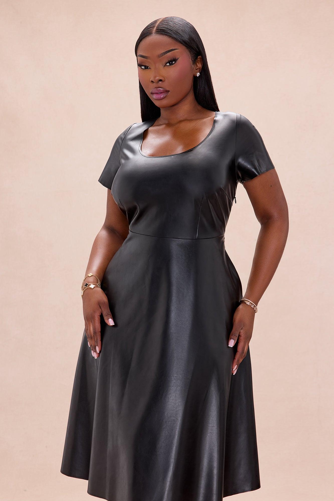 Available In Black, Burgundy And Camel. Faux Leather Midi Dress Cap Sleeves Scoop Neckline Hidden Side Zipper Closure Stretch Shell: 100% Polyurethane Lining: 100% Polyester Imported California Proposition 65WARNING: Cancer and Reproductive Harm - www.P65Warnings.ca.gov.