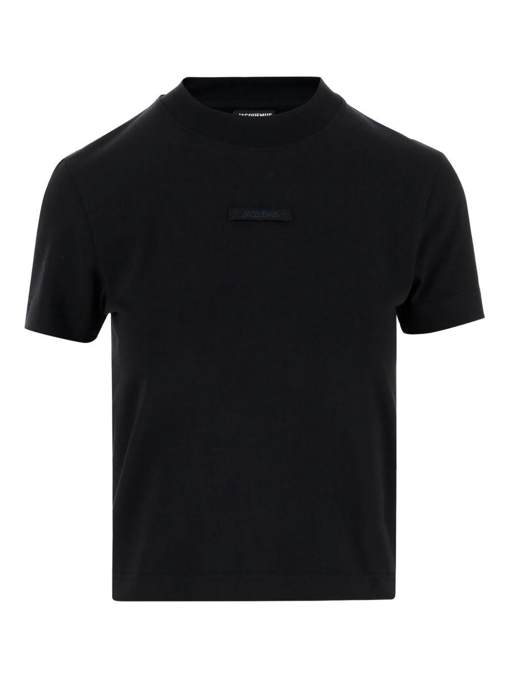 Shop Jacquemus Black Fitted T-shirt With Logo Patch In Stretch Cotton Woman from 800+ stores, starting at $99. Jacquemus' T-shirt easily elevates casual outfits. It's cut from stretch-cotton for a slim fit and decorated with a tonal grosgrain tab, embroidered with the label's logo. Style yours with denim.