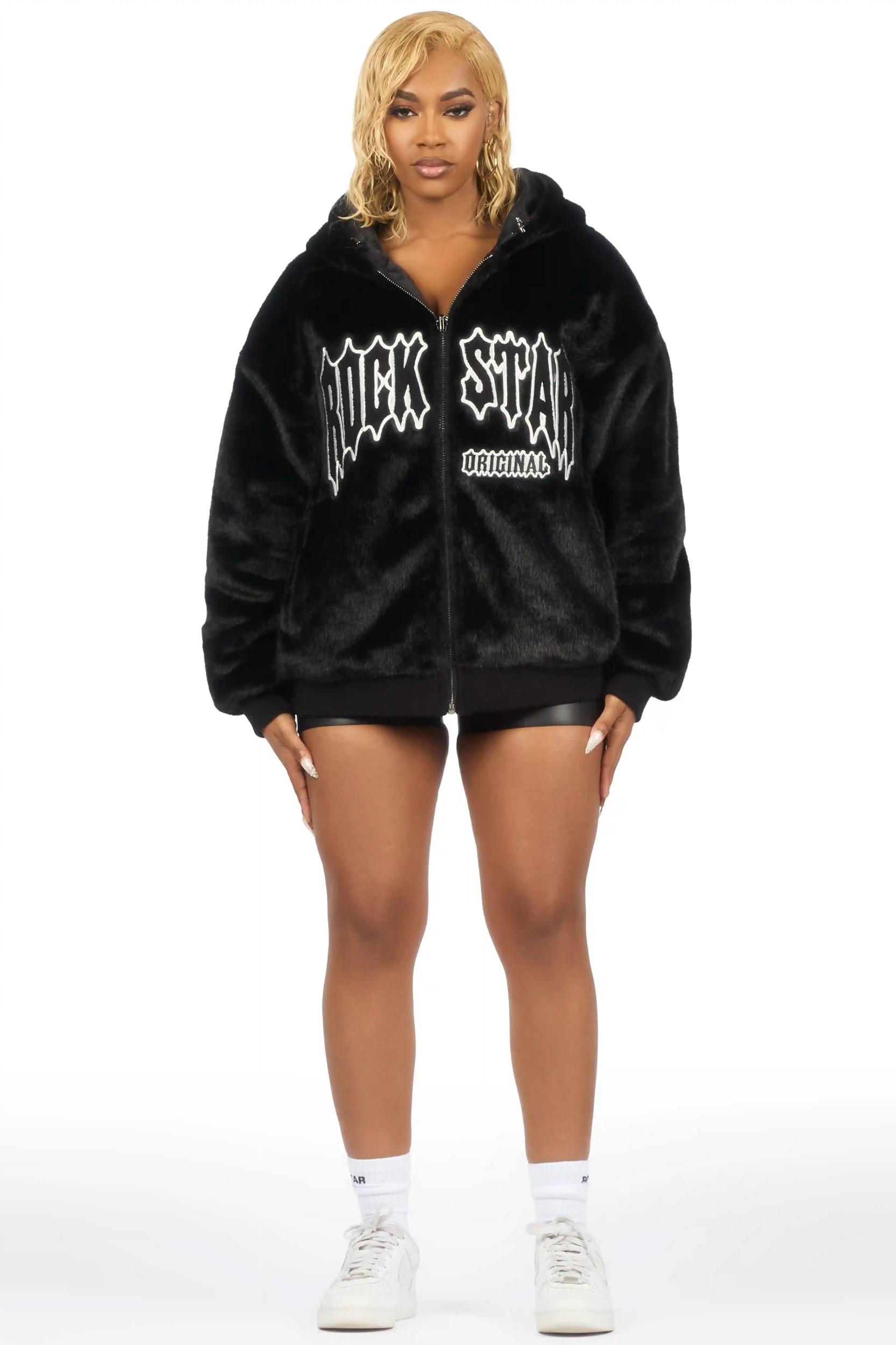 Jaleah Black Oversized Fur Jacket Female