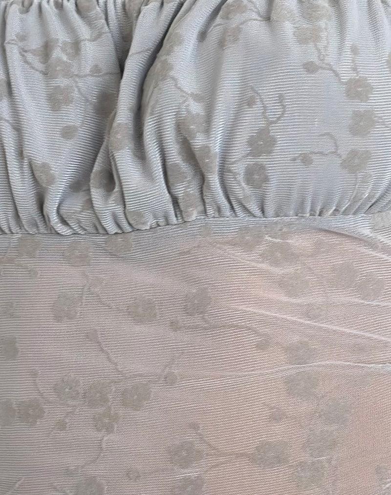 Jamet top in grey flocked mesh fabric. Features a cap sleeve, straight neckline and lined ruched panel along the bust. Best paired with our Roomy jorts. MODEL WEARS SIZE:EXTRA SMALL - MODEL HEIGHT:5'7