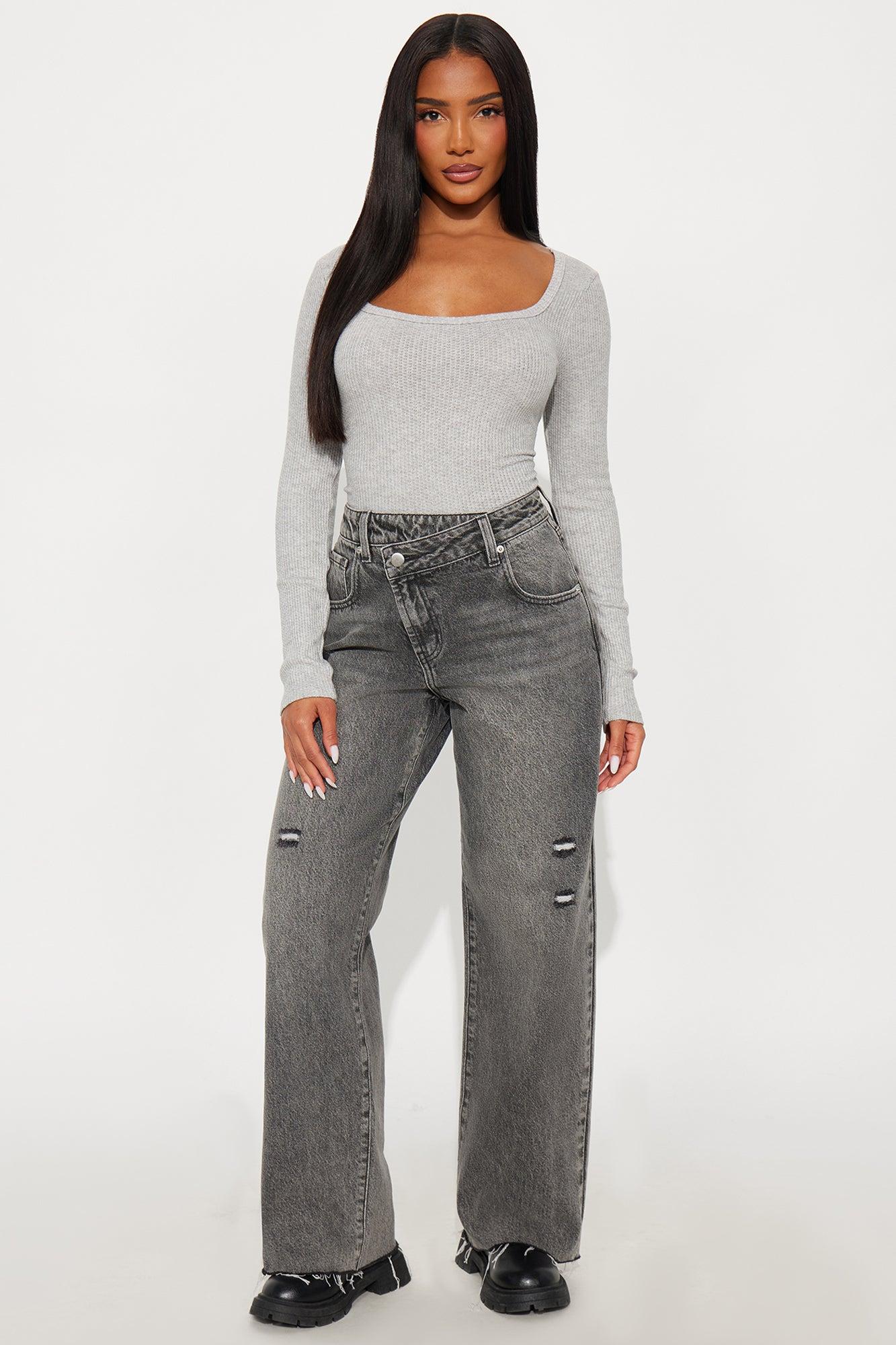 Jana Heathered Waffle Knit Long Sleeve Top - Heather Grey Female