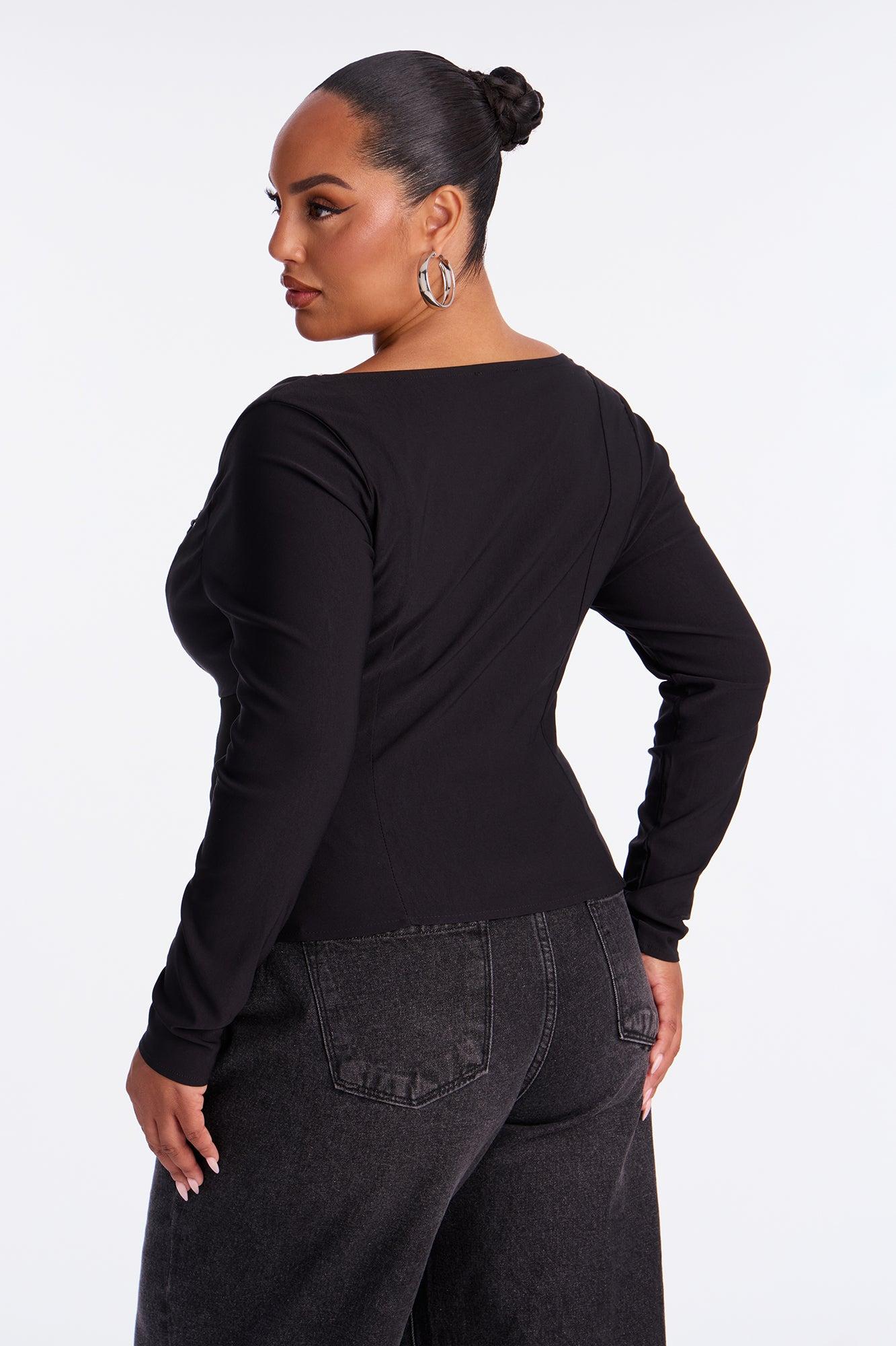 Janet Lace Up Corset Long Sleeve Top - Black Female