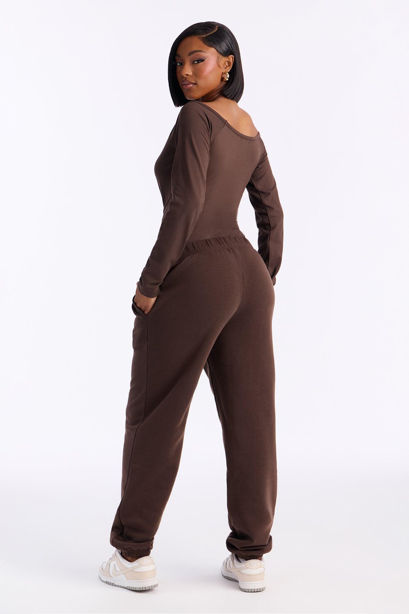 Available In Black, Chocolate, Light Pink And Wine. 2 Piece Ensemble Final Sale Bodysuit And Jogger Set Stretch Low Rise Jogger Top Self : 87% Polyester 13% Spandex Bottom Self : 100% Polyester Imported California Proposition 65WARNING: Cancer and Reproductive Harm - www.P65Warnings.ca.gov.