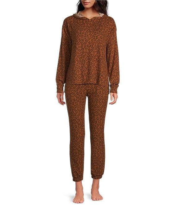 Jasmine & Ginger Leopard Print Brushed Knit Elastic Waist Coordinating Sleep Joggers